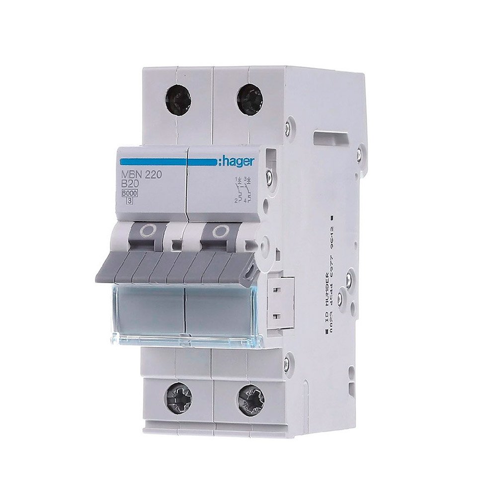 Короткий опис Автоматичного вимикача Hager 2-полюсний - 20A - характеристика B - 6kA - MBN220