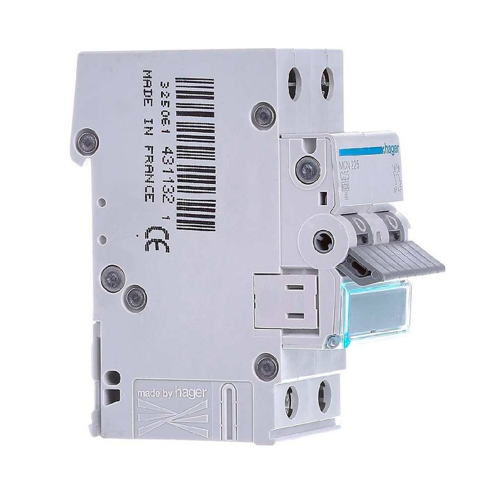 Автоматичний вимикач Hager 2-полюсний з номінальним струмом 25A та характеристикою відключення «C» забезпечує надійний захист електричних мереж. Максимальний струм короткого замикання 6kA. Артикул MCN225.