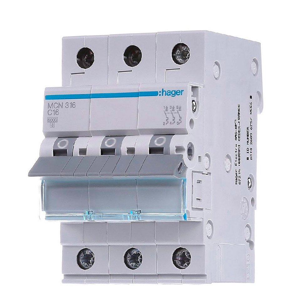 Автоматичний вимикач Hager 3-полюсний з номінальним струмом 16A та характеристикою відключення «C» забезпечує надійний захист електричних кіл від перевантажень та коротких замикань. Максимальний струм короткого замикання 6kA. Артикул MCN316 полегшує ідентифікацію та замовлення потрібного товару.
