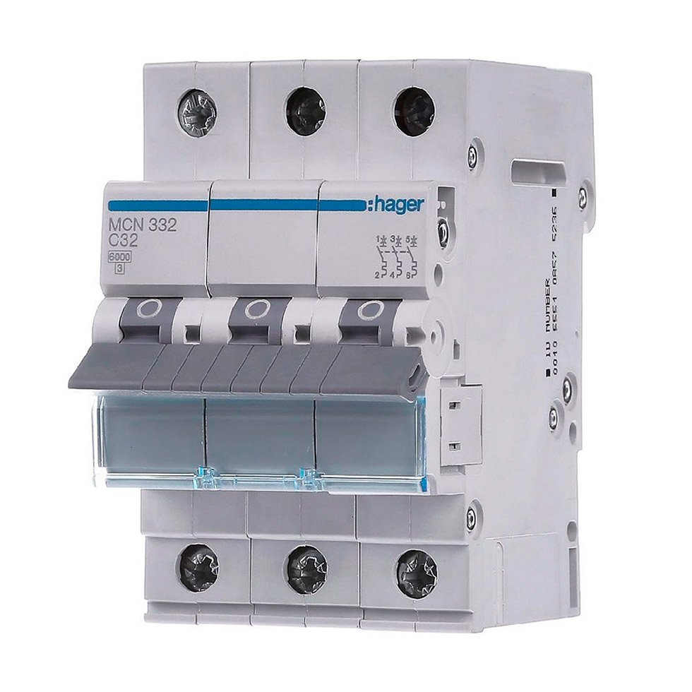 Автоматичний вимикач Hager 3-полюсний з номінальним струмом 32A та характеристикою відключення «C» забезпечує надійний захист електричних мереж. Максимальний струм короткого замикання 6kA. Артикул MCN332 полегшує ідентифікацію та замовлення потрібного товару.