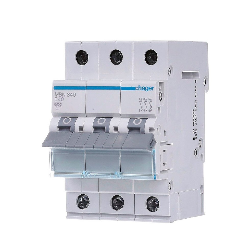Короткий опис автоматичного вимикача Hager 3-полюсний - 40A - характеристика B - 6kA - MBN340