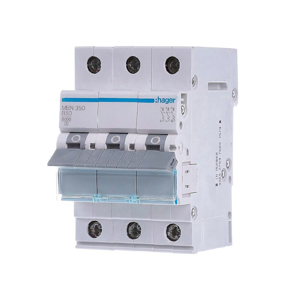 Короткий опис Автоматичного вимикача Hager 3-полюсний - 50A - характеристика B - 6kA - MBN350