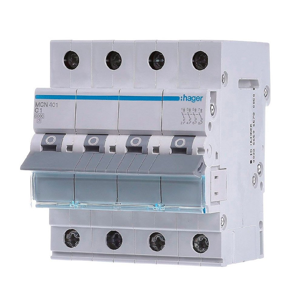 Короткий опис Автоматичного вимикача Hager 4-полюсний - 1A - характеристика C - 6kA - MCN401