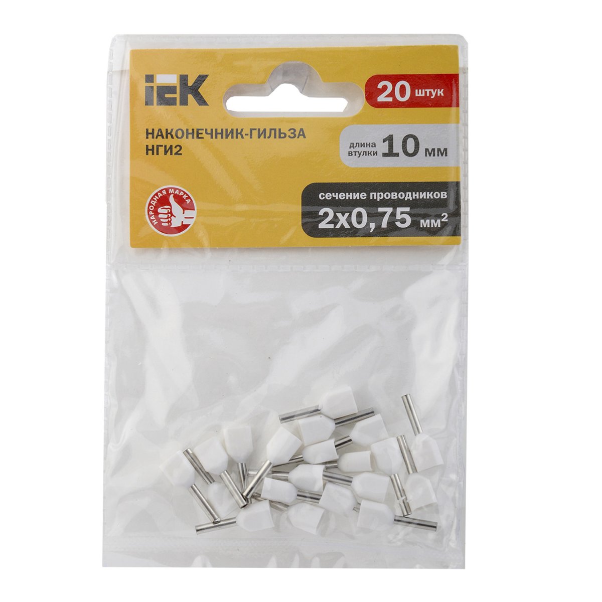 – Тип: наконечник-гільза НГИ2 0.75-10 (білий 20шт) IЕK. уп. IЕK. уп.– Номінальний переріз провідників: 2х0,75