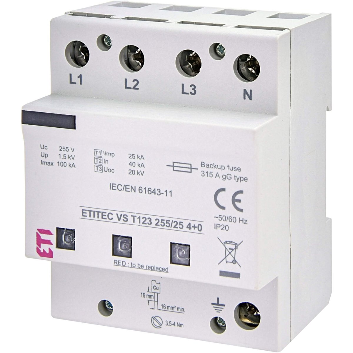 Обмежувач перенапруги тип I+II+III, ETITEC VS T123 255/25 (4+0) ETI 2442938