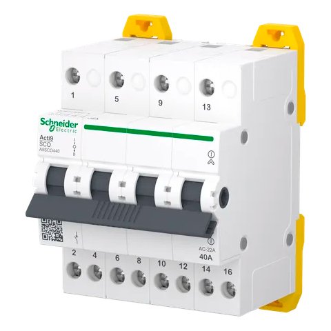 - Перемикач iSSW Acti9 A9SCO440 призначений для встановлення у нових будівлях або таких, що потребуються реновації.