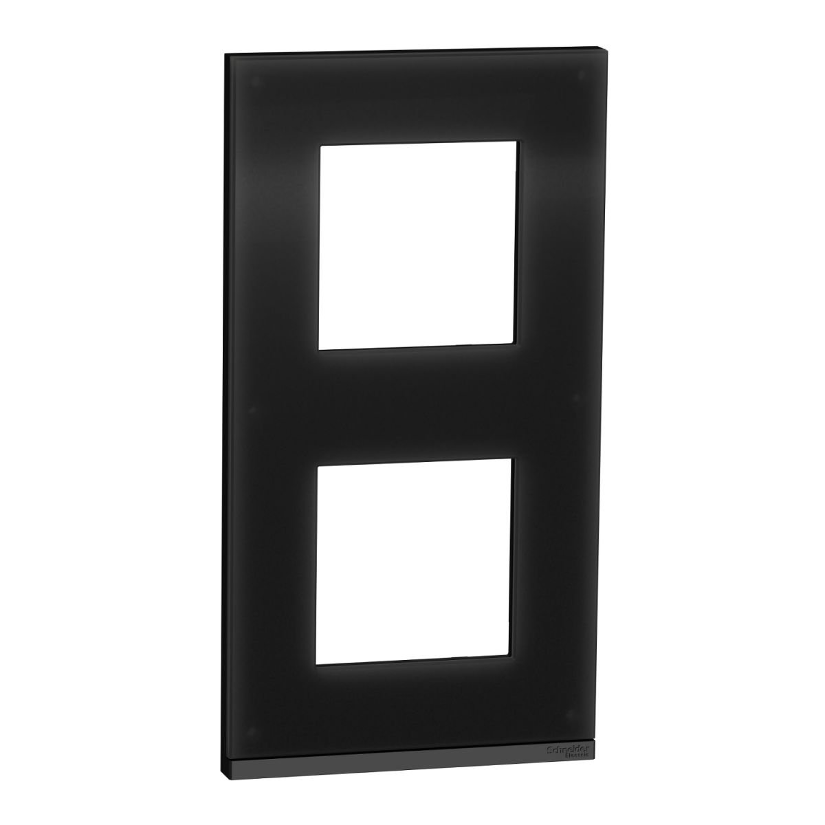 Рамка 2-а Schneider Electric Unica Pure NU6004V86, вертикальна, Чорне скло/Антрацит