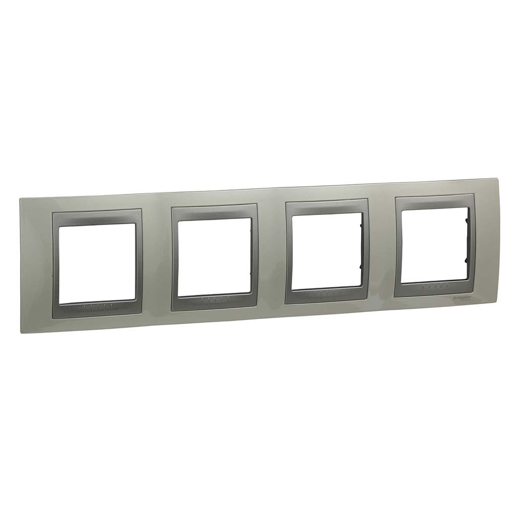 Установча рамка з натурального металу, на 4 місця для механізмів Уніка.Характеристики: