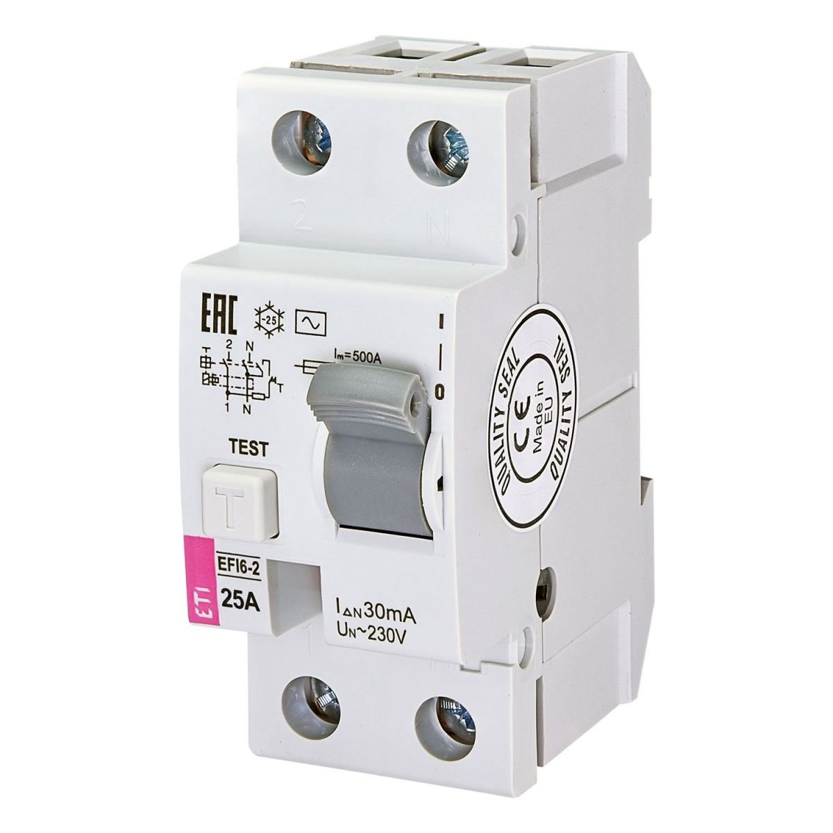 Серія ETI EFI6-P2 має зрозуміле чітке маркування виробу, що інформує про всі основні характеристики пристрою.