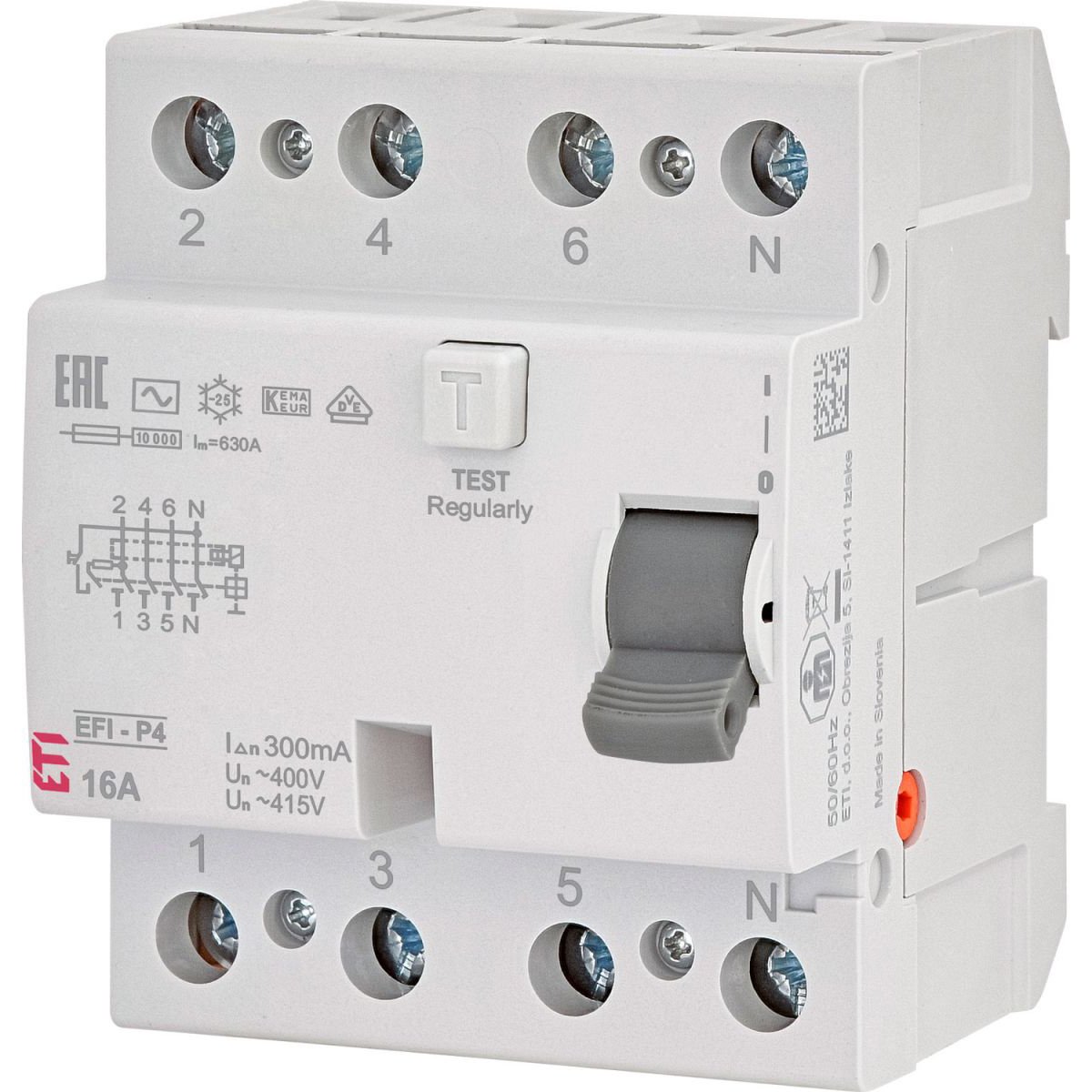 Реле диференційне (ПЗВ) 4р EFI-P4 16/0,3 тип AC (10kA), ETI 2061630