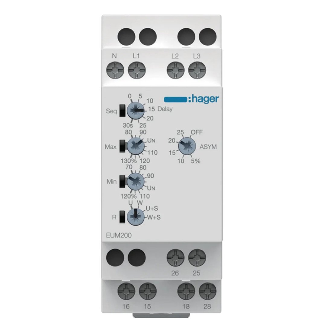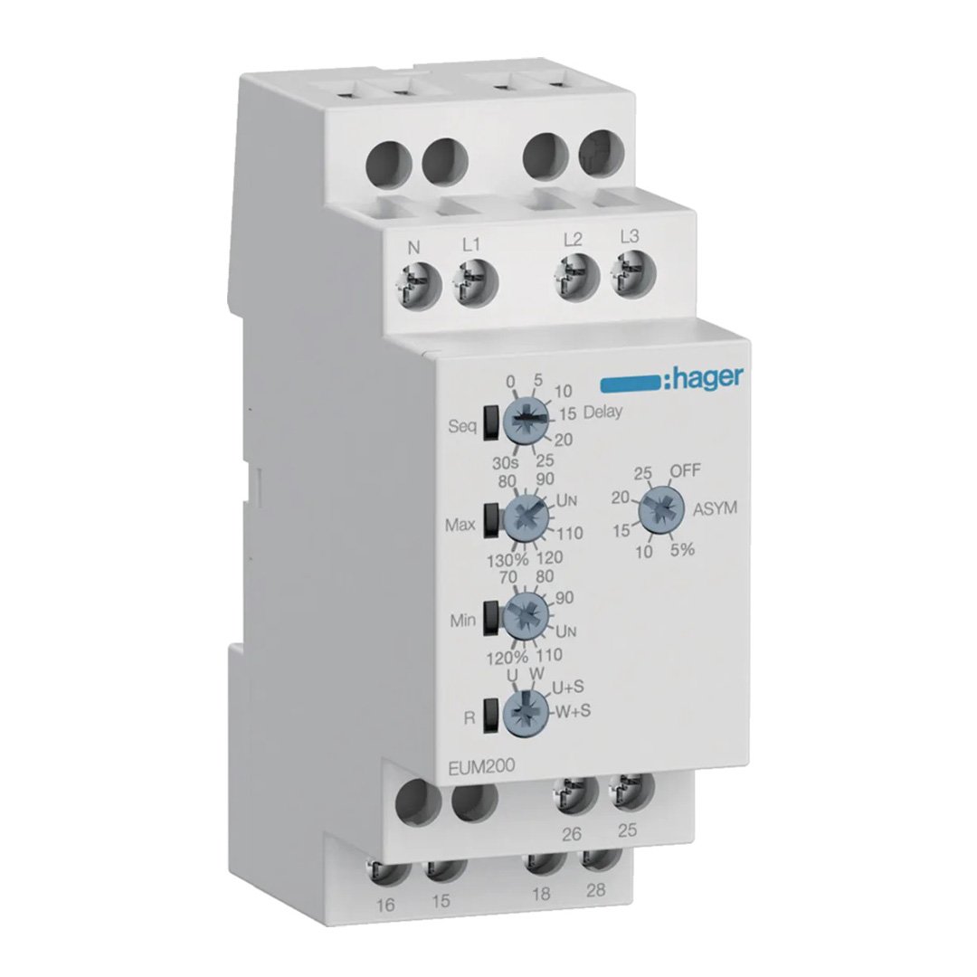 Реле контролю фаз та напруги без затр. на увімкн., 1P+N/3P(N) 2ПК, Hager (Хагер) EUM200
