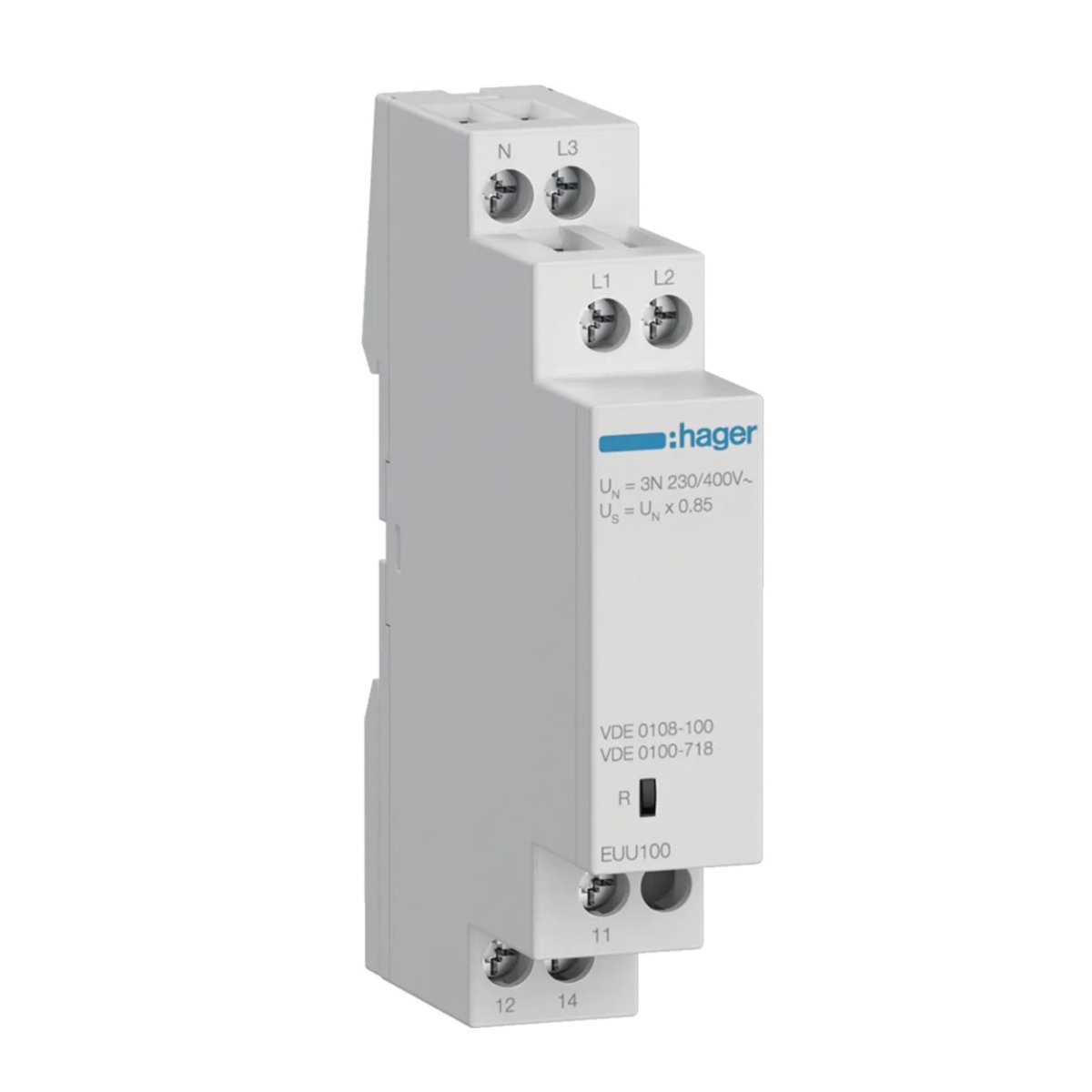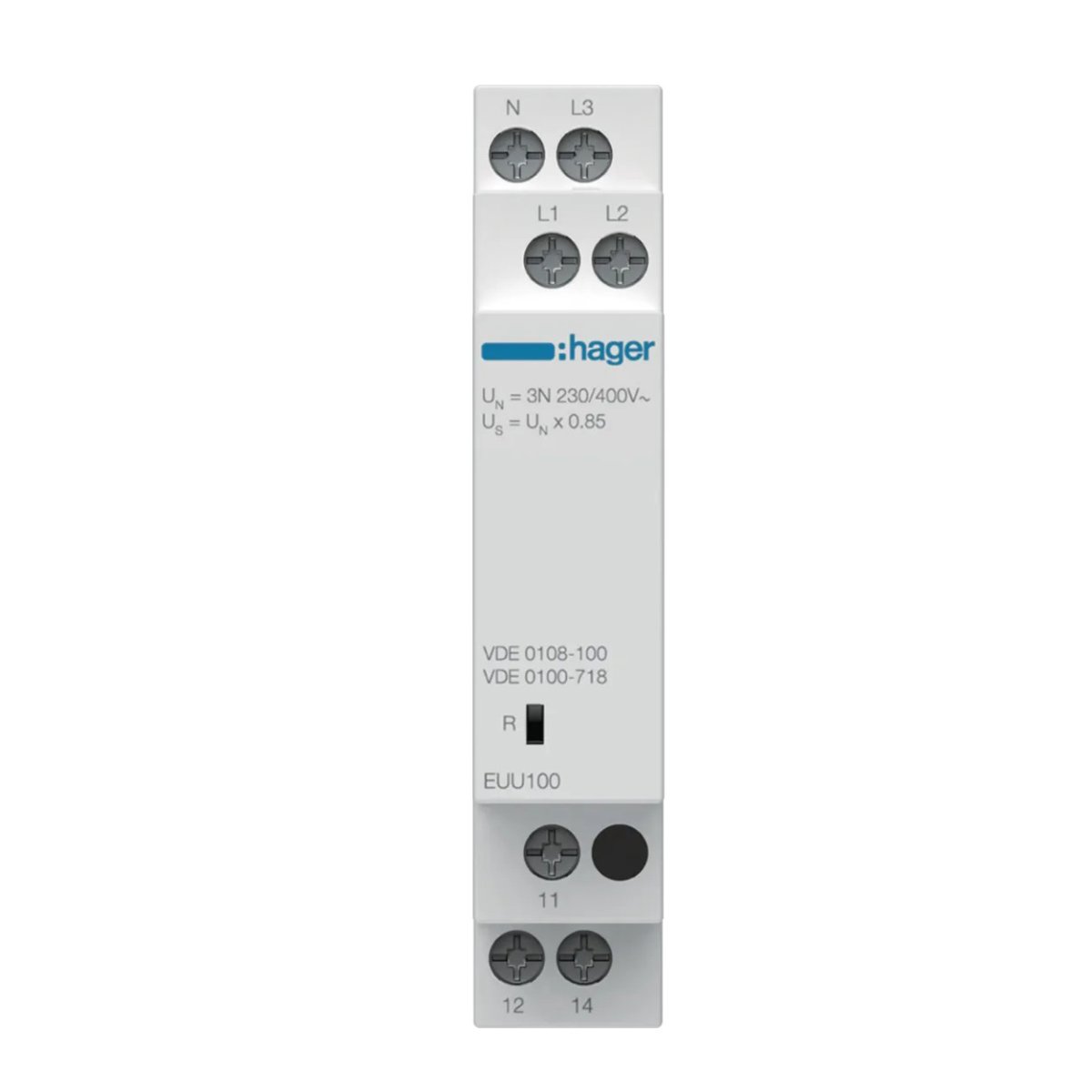 Реле Hager контролює змінну напругу в 1- або 3-фазних мережах (кожна фаза щодо нейтрального провідника) при зниженій напрузі.