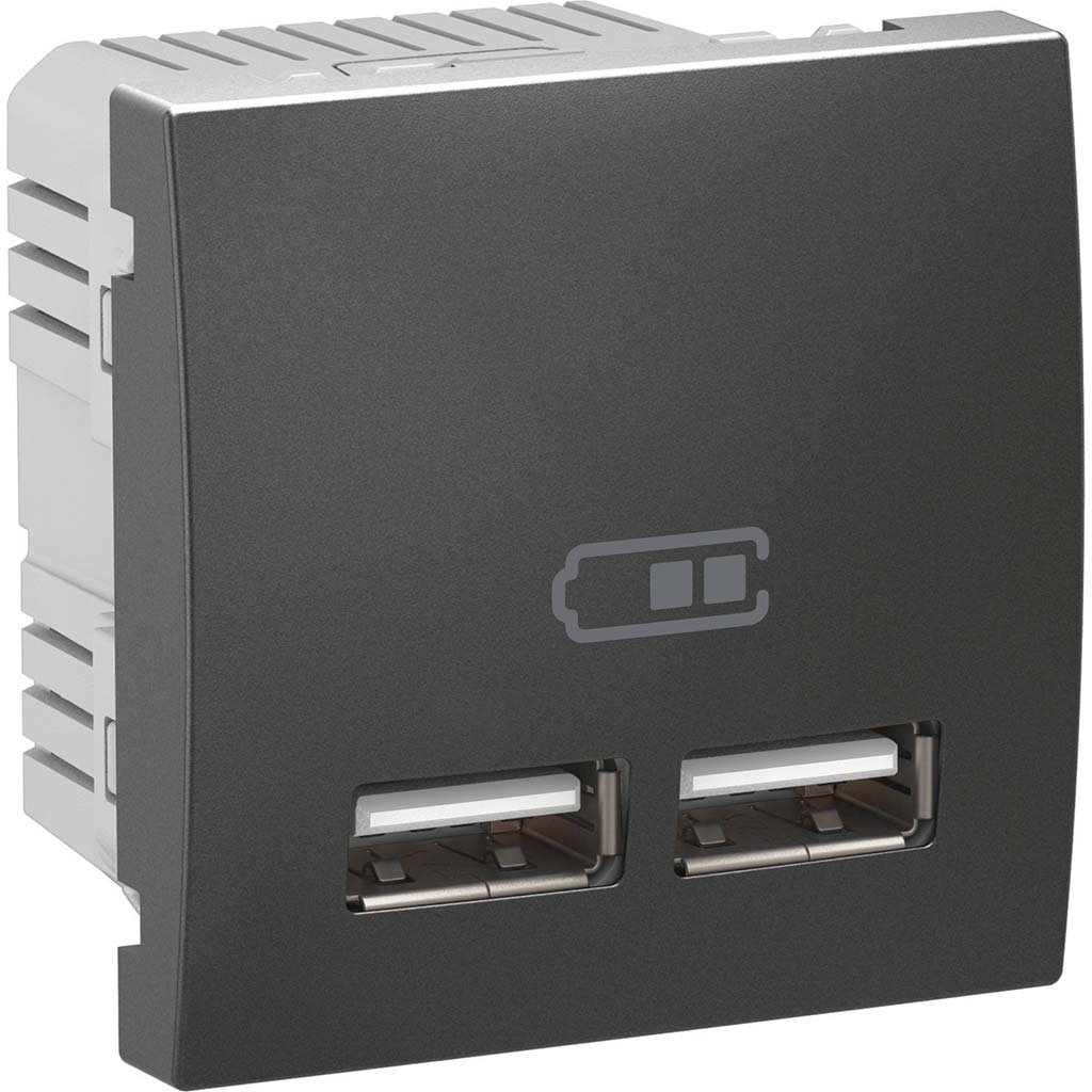 Розетка 2хUSB-вихід для зарядки 2-модуля. Schneider Electric Unica MGU3.418.12, Графіт