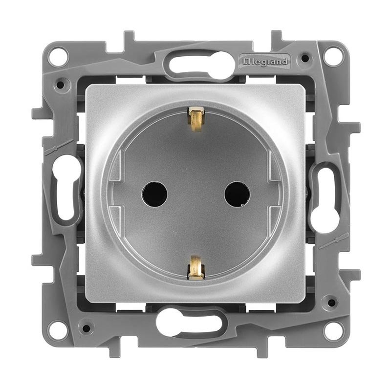 Розетка електрична з заземленням Legrand Etika 672422, із захисними шторками алюміній