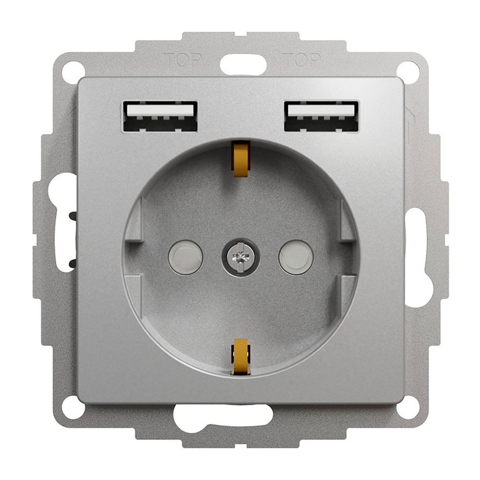 Розетка із заземленням + 2 USB тип А Schneider Electric «Sedna Design» SDD113052 (колір - алюміній)