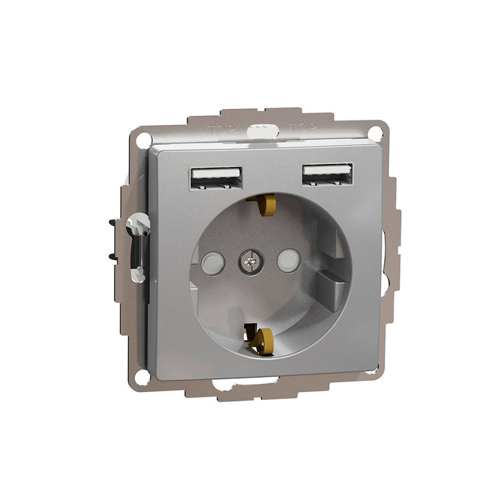 Розетка із заземленням + 2 USB тип Schneider Electric «Sedna Design» SDD113052, колір - алюміній