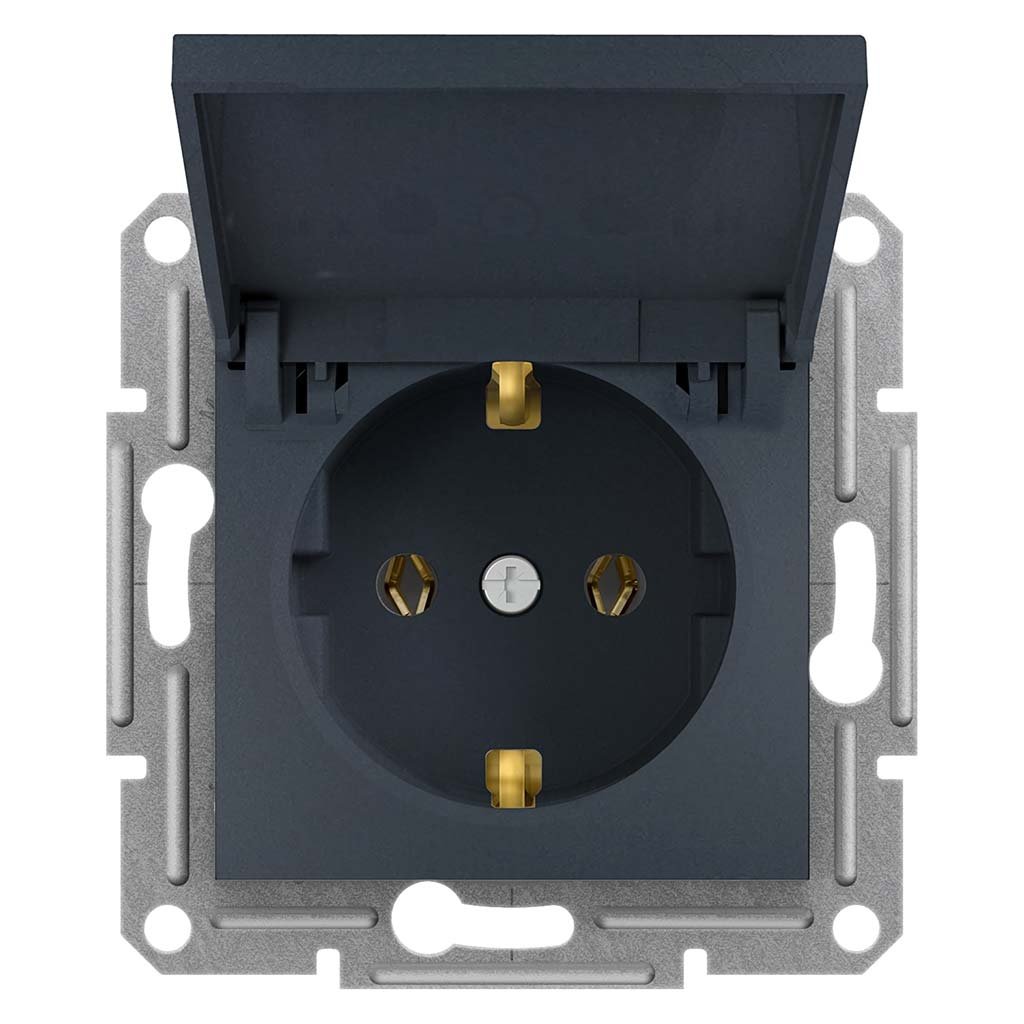Розетка із заземленням і кришкою «Asfora», (антрацит) Schneider Electric EPH3100171