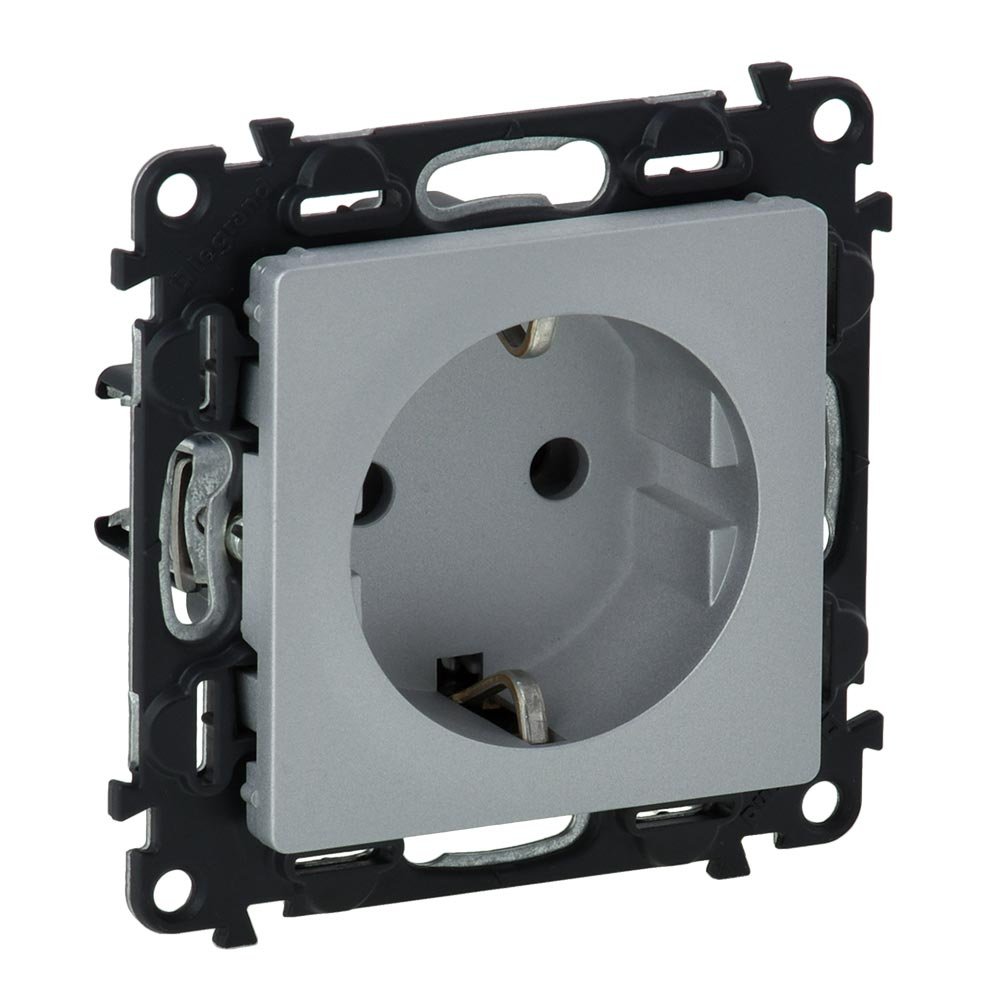 Розетка із заземленням, Legrand Valena Life 753625, гвинтові клеми, алюміній