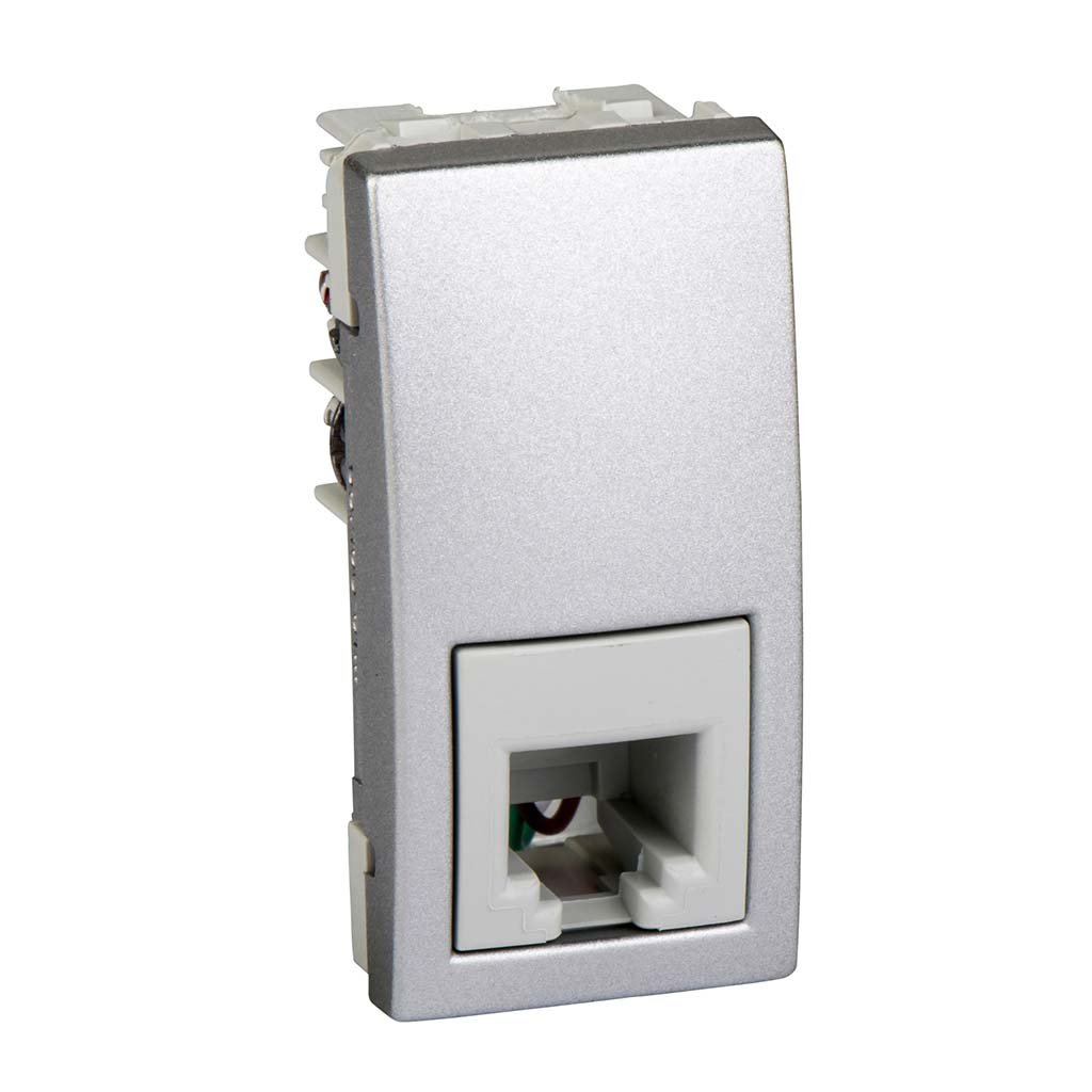 Телефонна розетка з одним роз'ємом на чотири контакти тип RJ11, Уніка.1 модуль. При необхідності з двох таких модулів можна конфігурувати подвійну телефонну розетку.
