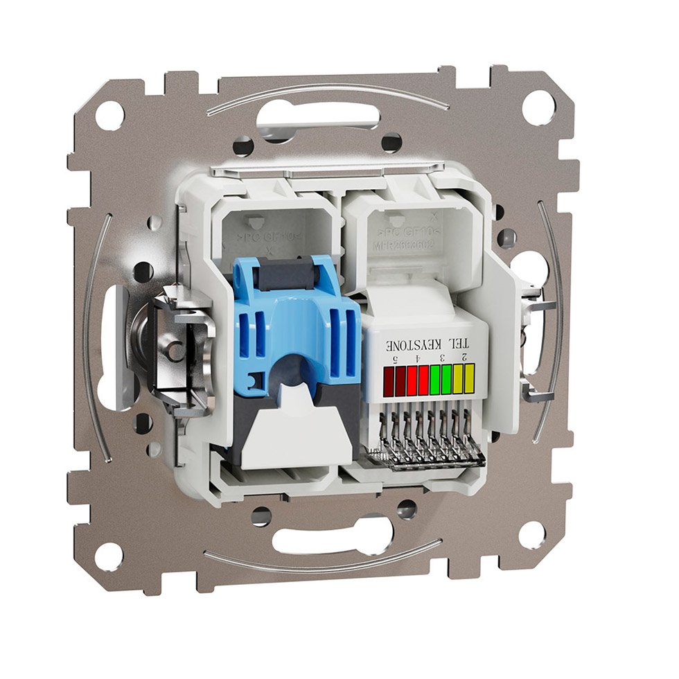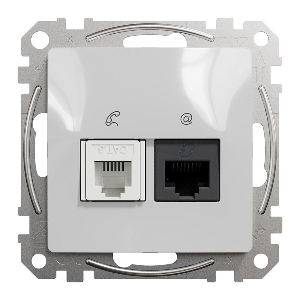Розетка телекомунікаційна RJ45+RJ11 6UTP Schneider Electric «Sedna Design» SDD113468 ідеально підходить для використання в офісах, будинках, квартирах та інших приміщеннях, де потрібне підключення мережного та телефонного обладнання.