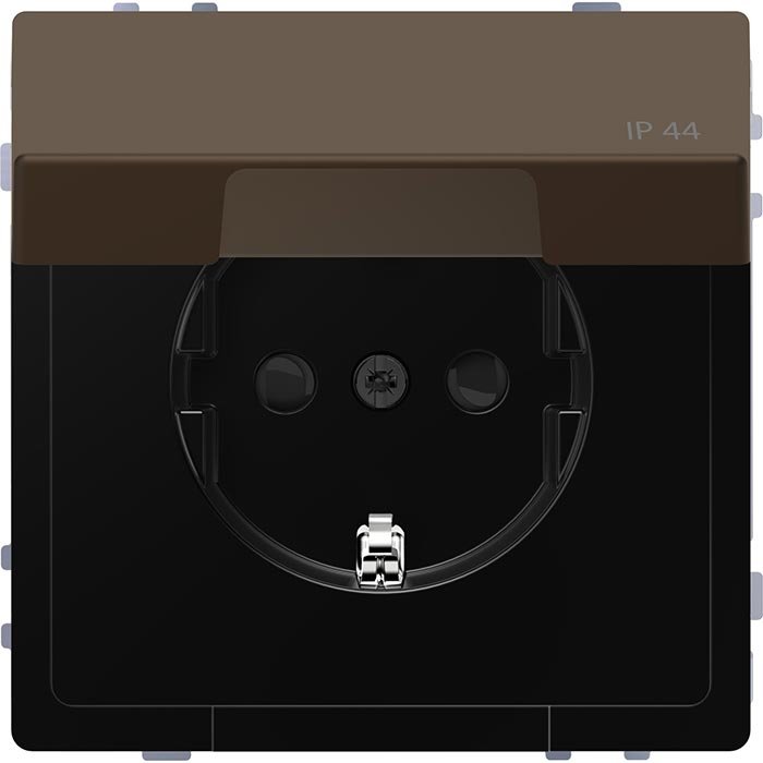 Розетка з з/к і кришкою D-Life IP44 «Мокко» Merten MTN2314-6052