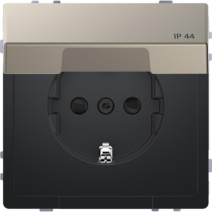 Герметична електрична розетка з кришкою і з вбудованими шторками для захисту від випадкового дотику (захист від дітей).Постачається в комплекті з кільцем ущільнювача, який дозволяє домогтися герметичності IP44.