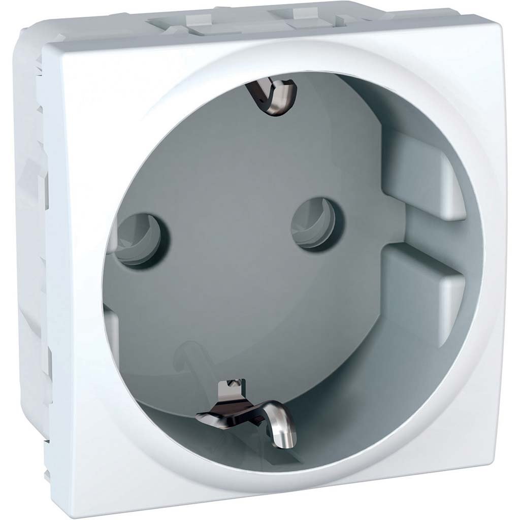 – Електрична розетка із заземлювальним контактом і захистом. Контакти розетки захищені спеціальними шторками - «захист від дітей».– 2 модуля.