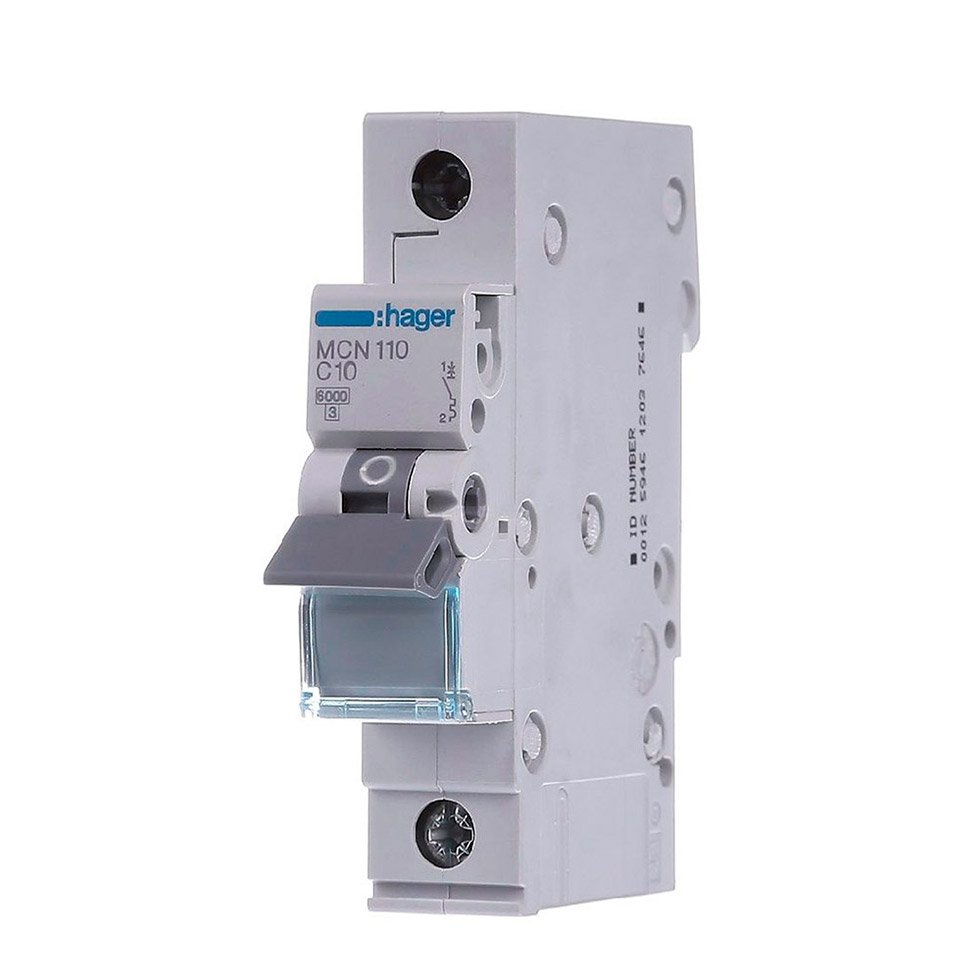 Краткое описание Автоматического выключателя Hager 1-полюсный - 10A - характеристика C - 6kA - MCN110