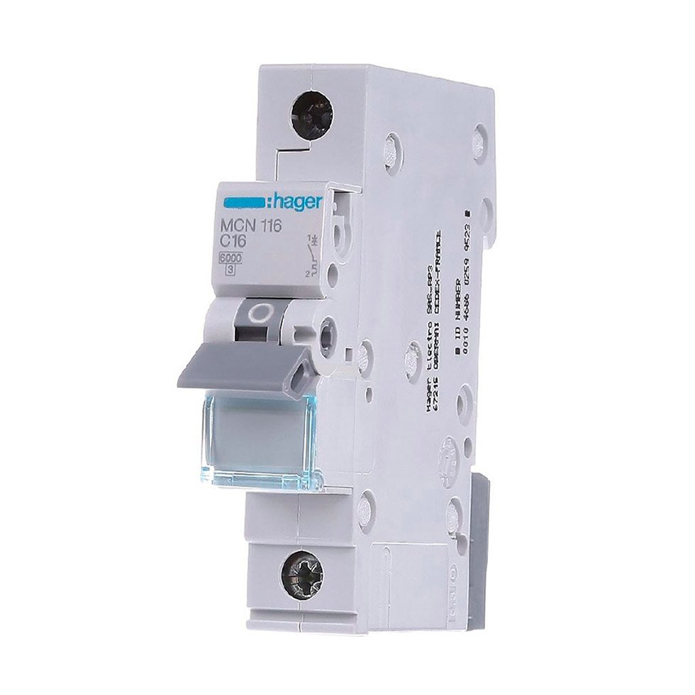 Краткое описание Автоматического выключателя Hager 1-полюсный - 16A - характеристика C - 6kA - MCN116
