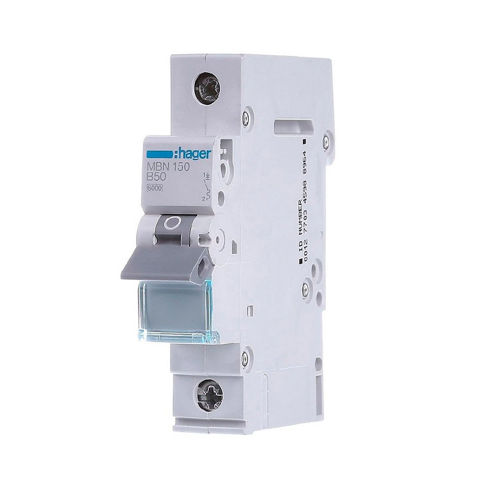 Автоматический выключатель Hager 1-полюсный с номинальным током 50A и характеристикой отключения «B» обеспечивает надежную защиту электрических сетей от перегрузок и коротких замыканий. Максимальный ток короткого замыкания составляет 6kA. Производитель - Hager. Артикул - MBN150.