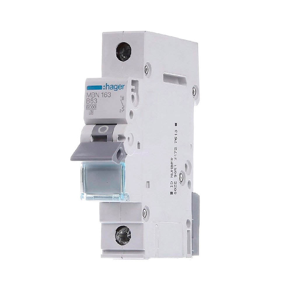 Краткое описание автоматического выключателя Hager 1-полюсный - 63A - характеристика B - 6kA - MBN163