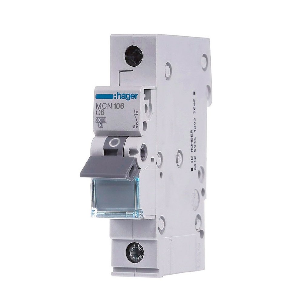 Краткое описание автоматического выключателя Hager 1-полюсный - 6A - характеристика C - 6kA - MCN106