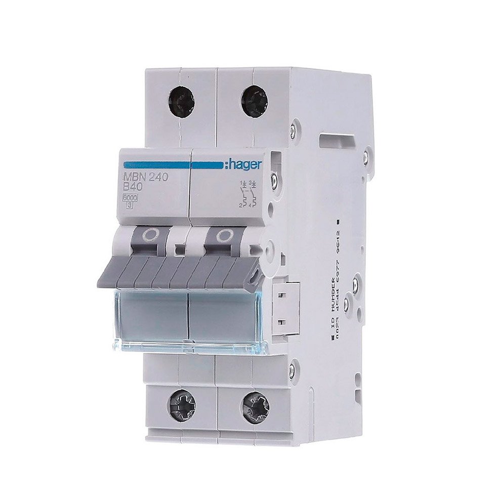 Краткое описание автоматического выключателя Hager 2-полюсный - 40A - характеристика B - 6kA - MBN240