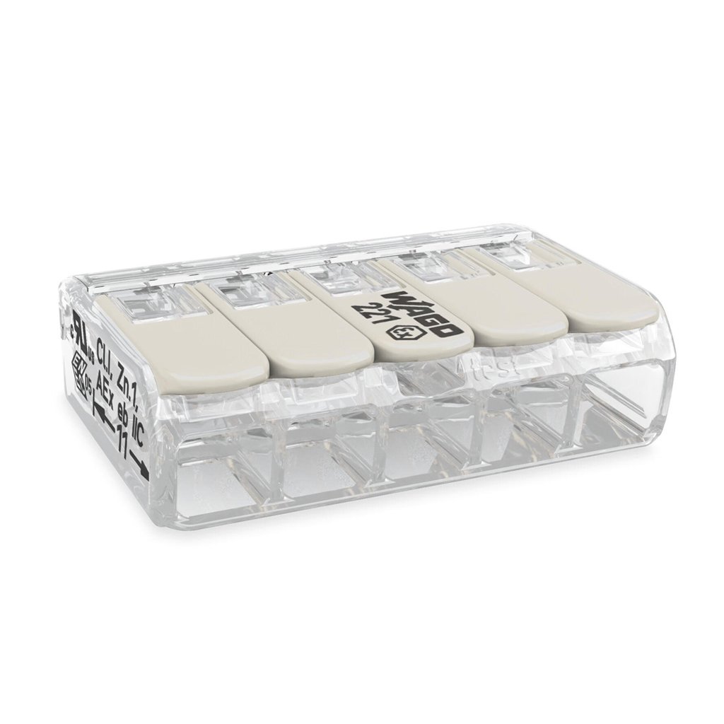 Клеммник Wago 5 (монолитных) х от 0,14 до 4 мм² (32А) Сu 221-485