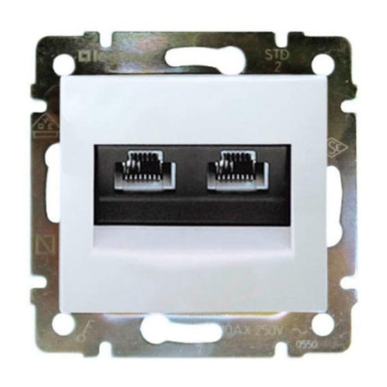 Компьютерная розетка 5 категории, UTP имеет два выхода RJ45, применяется для информационных сетей.– Механизм и лицевая панель розетки идут в комплекте.