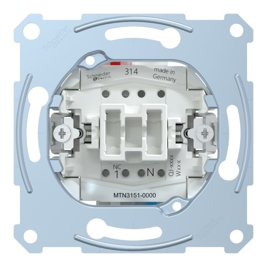 Механизм Merten 2-кнопочного 1-полюсного выключателя с 1 размыкающим и 1 замыкающим контактом.
