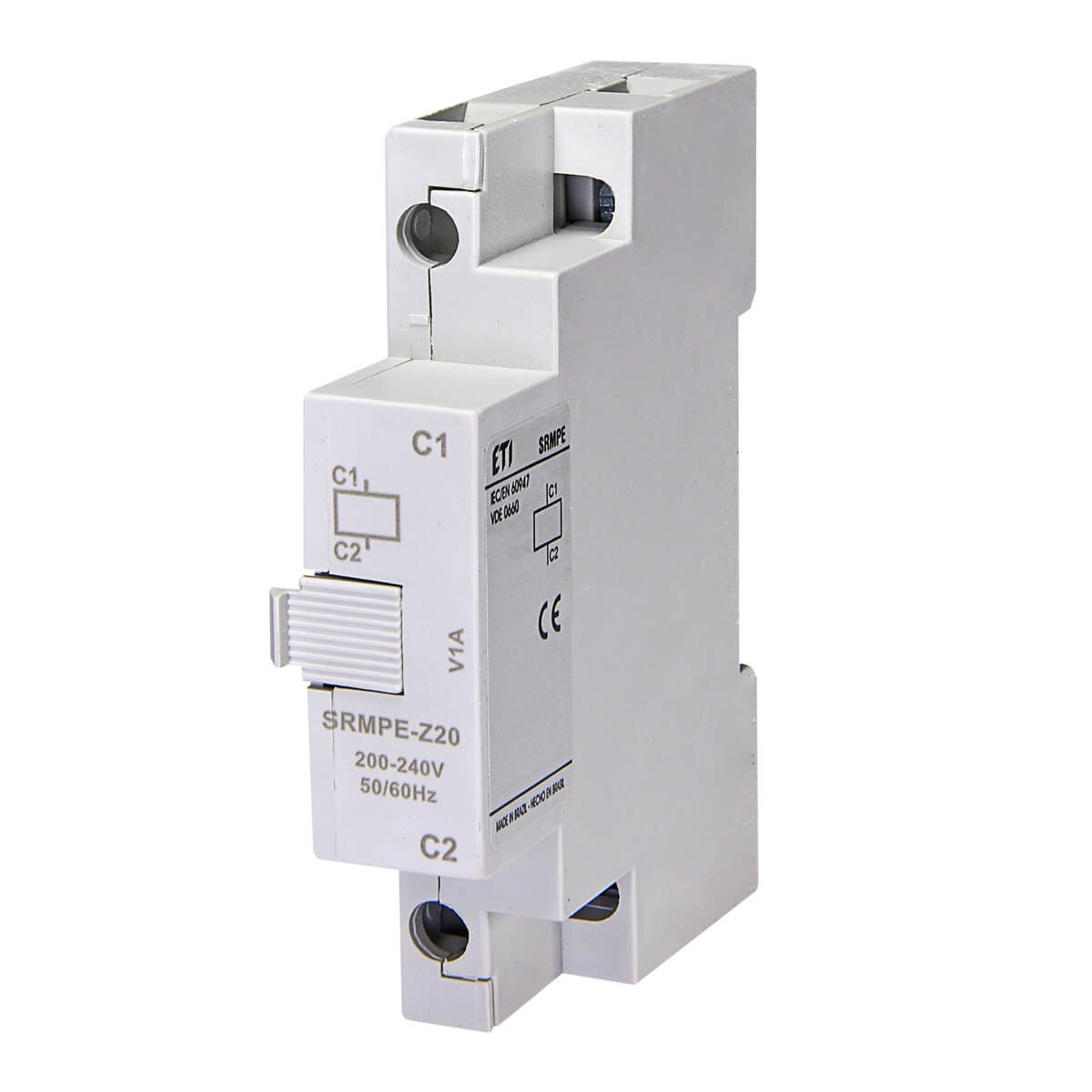 Независимый расцепитель SRMPE-Z20 ETI используется для контроля цепи и её отключения при подаче импульса в диапазоне от 200V до 240V AC.