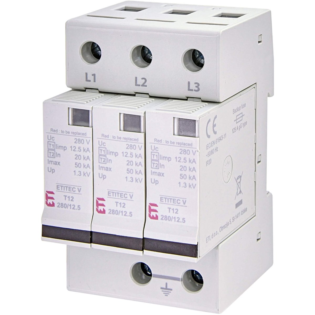 Ограничитель перенапряжения тип I+II, ETITEC V T12 280/12,5 (3+0) RC ETI 2442915