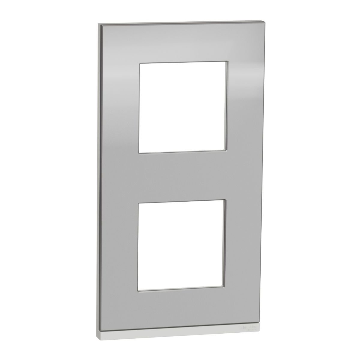 Рамка 2-постовая Schneider Electric Unica Pure NU6004V80, вертикальная, алюминий матовый/белый