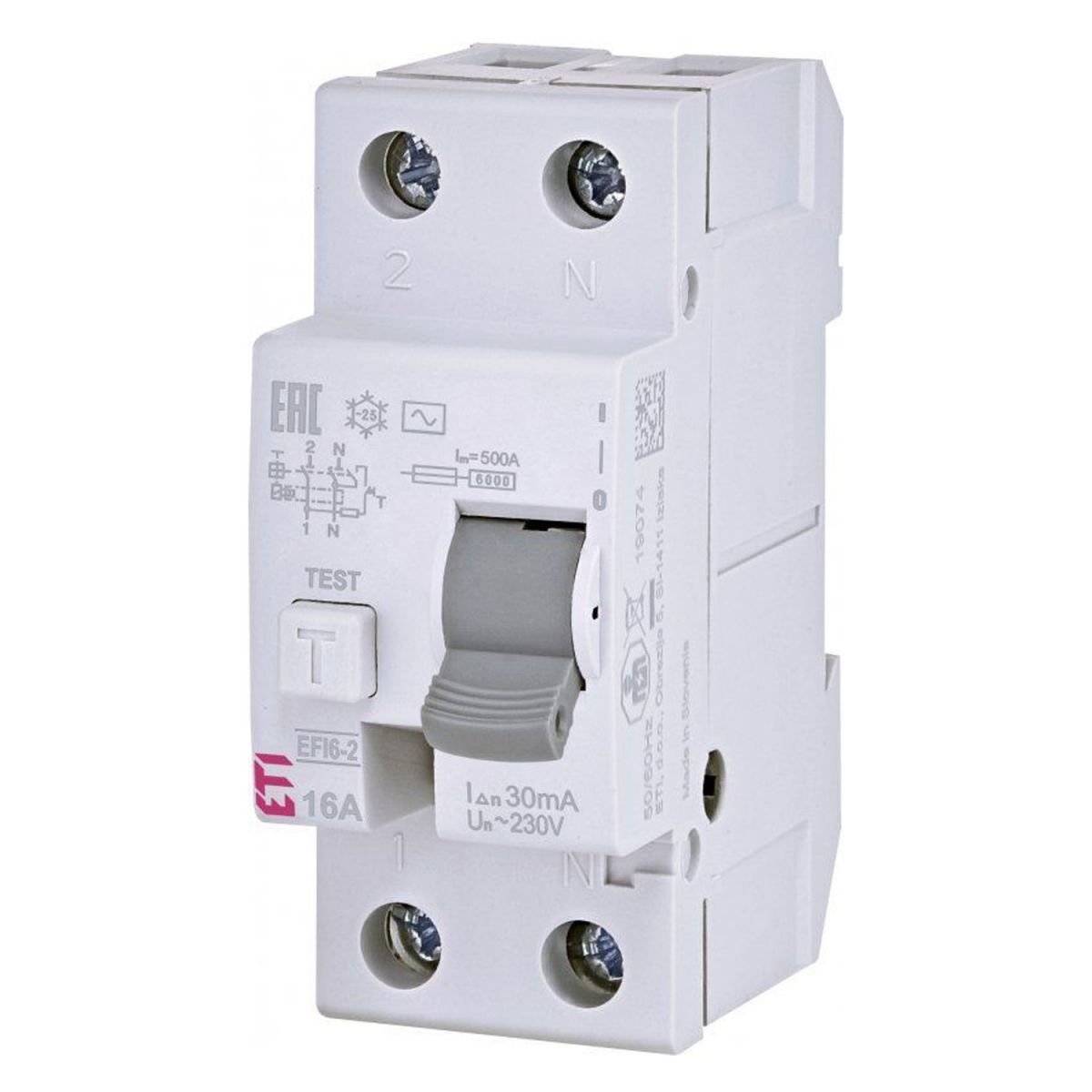 Дифференциальное реле (УЗО) 2р EFI6-P2 16/0,03 тип AC (6kA), ETI 2061250