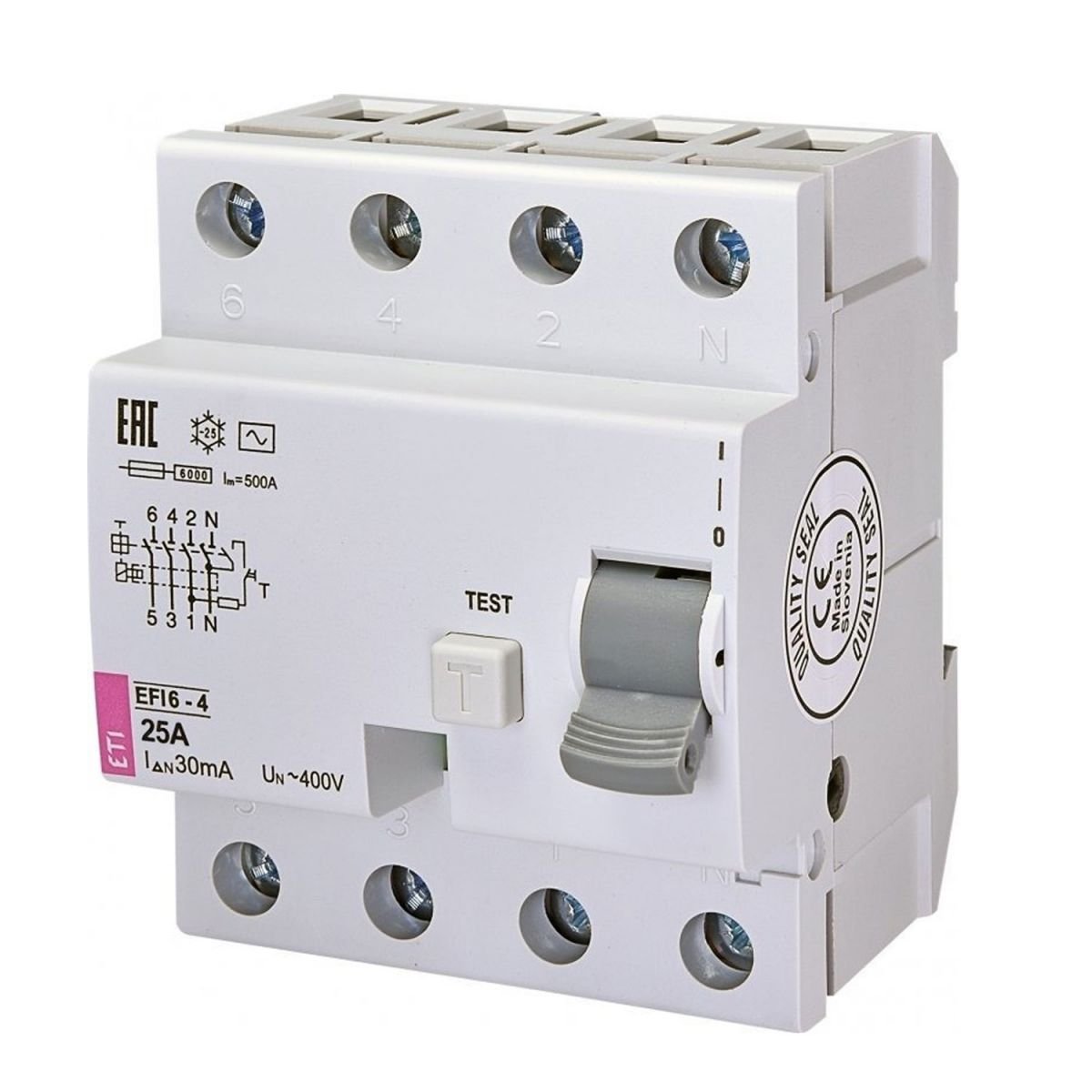 Дифференциальное реле (УЗО) 4р EFI6-P4 40/0,03 тип AC (6kA), ETI 2061652