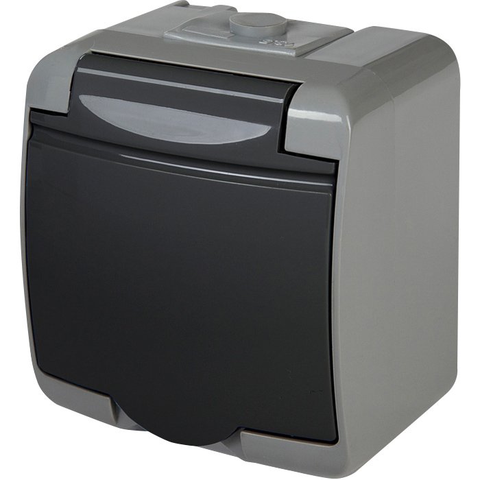 Розетка 1-я с з/к Schuko RHE-1s-SRG (серая/графит. крышка, IP54) ETI Hermetics 4668106
