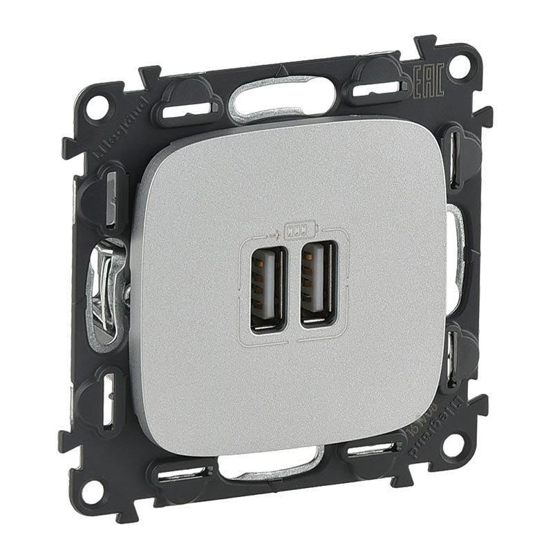 Розетка 2-ая USB для зарядки, Legrand Valena Allure 754997, алюминий
