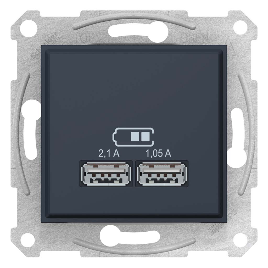 Розетка 2-а с USB выходами для зарядки Schneider Electric SDN2710270, цвет графит