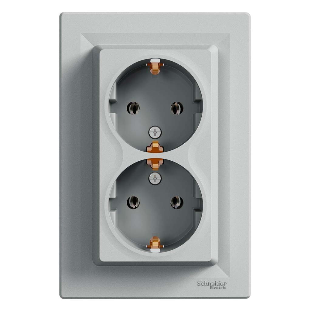 Розетка 2-я с заземлением «Asfora», (цвет алюминий) Schneider Electric EPH9900161