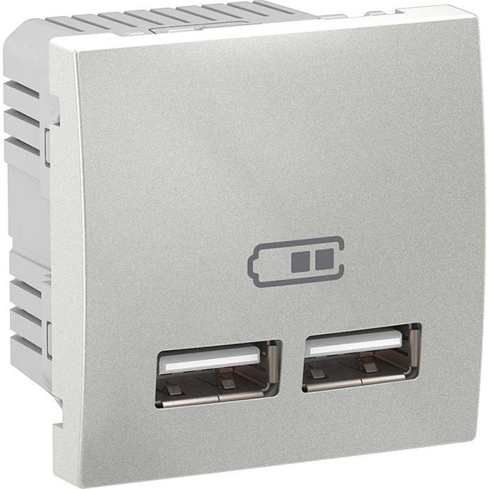 Розетка 2хUSB-выход для зарядки 2-модуля. Unica алюминий Schneider Electric MGU3.418.30