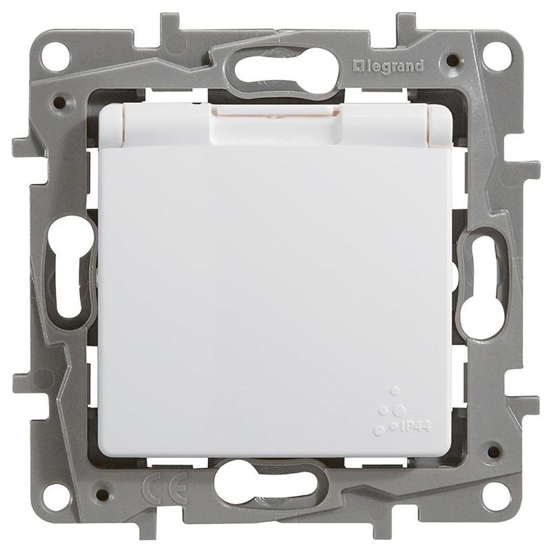 – Электрическая розетка с заземляющим контактом и защитной крышкой.– Степень защиты IP от пыли и влаги: IP44. Рекомендуется устанавливать в влажных помещениях и в местах с повышенной запыленностью.