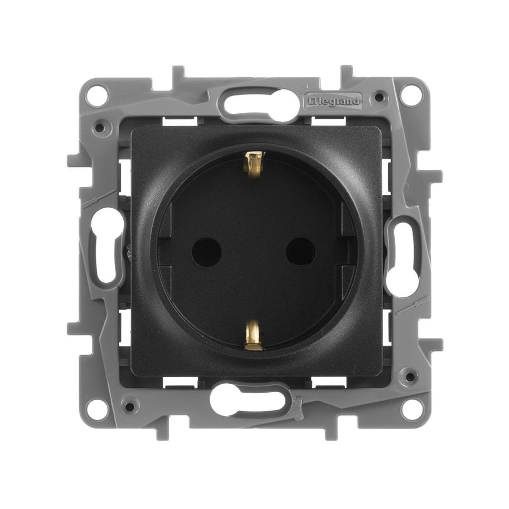 Розетка электрическая с заземлением Legrand Etika 672622, с защитными шторками антрацит