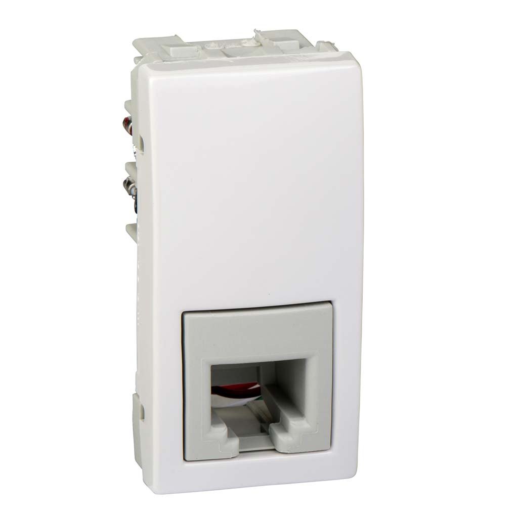 Телефонная розетка с одним разъемом на четыре контакта тип RJ111 модуль. При необходимости из двух таких модулей можно сконфигурировать двойную телефонную розетку.