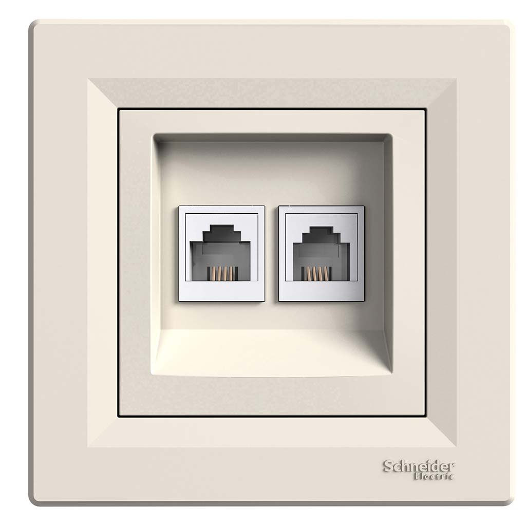 Розетка телефонная RJ11 4 конт. двойная Asfora, (крем) Schneider Electric EPH4200123